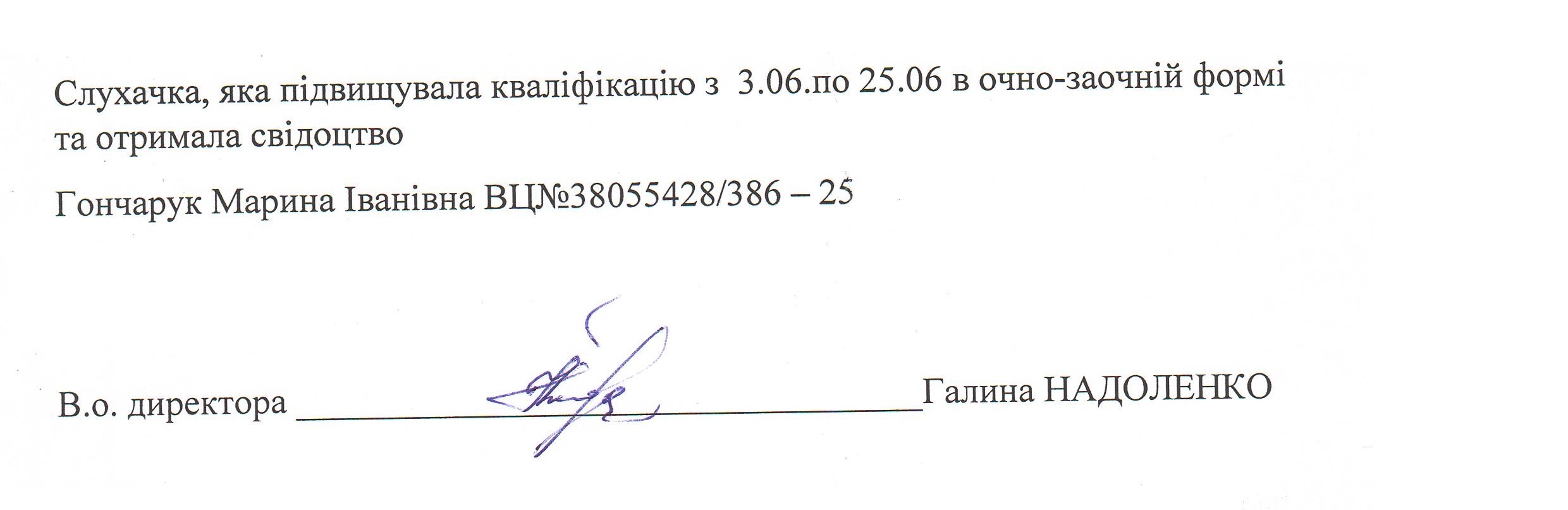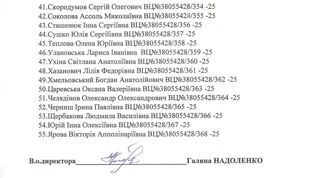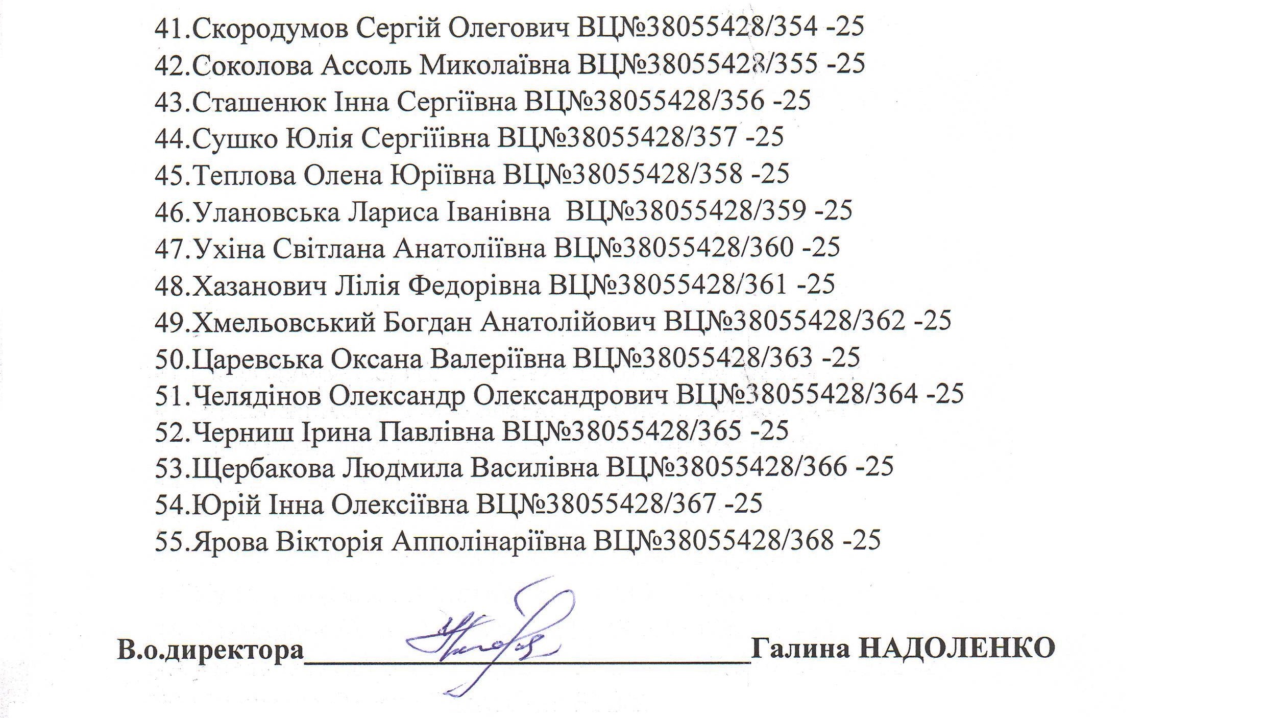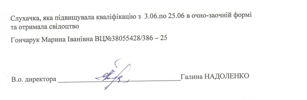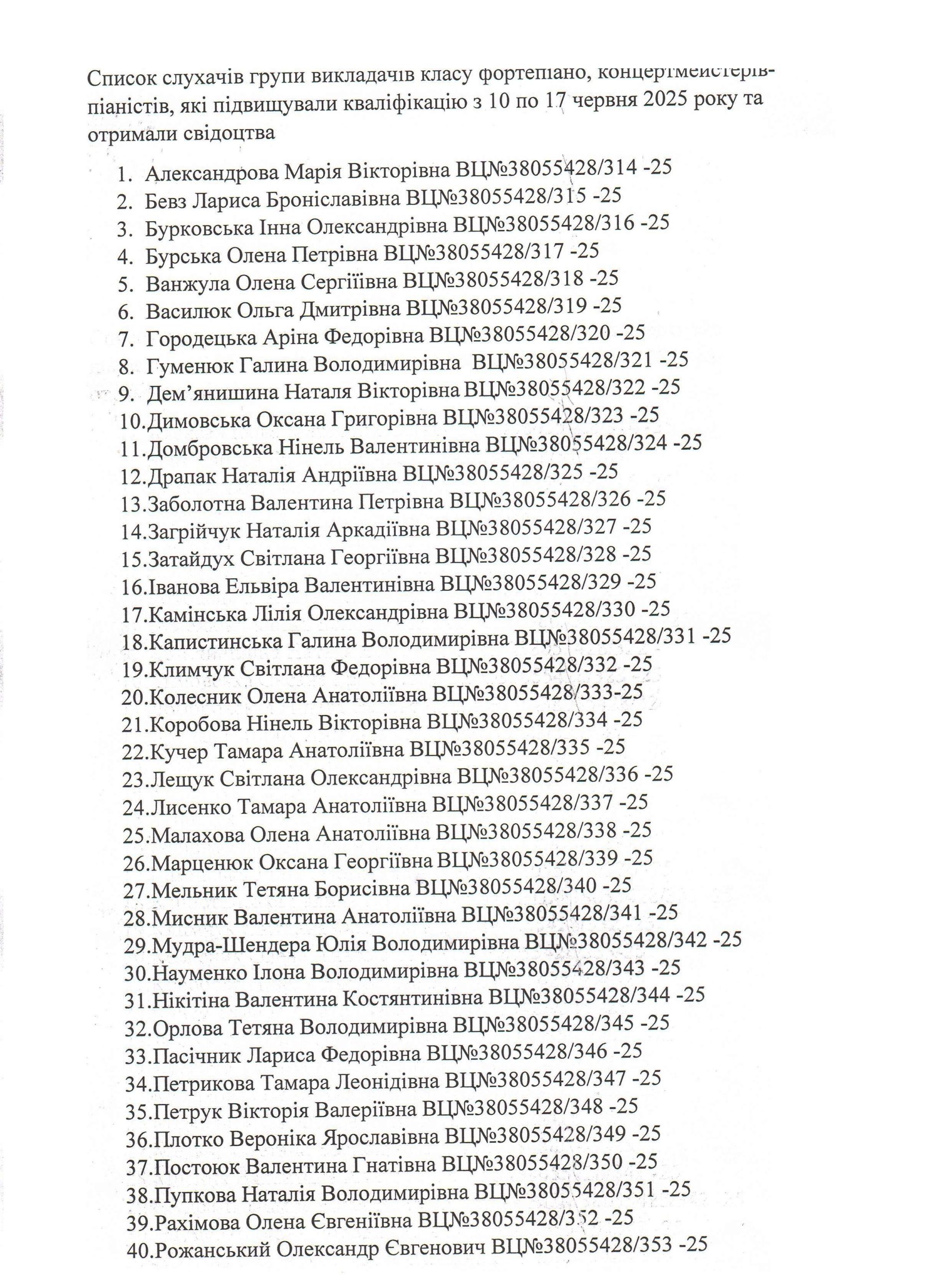 Список слухачів групи викладачів класу фортепіано, концертмейстерів-піаністів, які підвищували кваліфікацію з 10 по 17 червня 2025 року та отримали свідоцтва