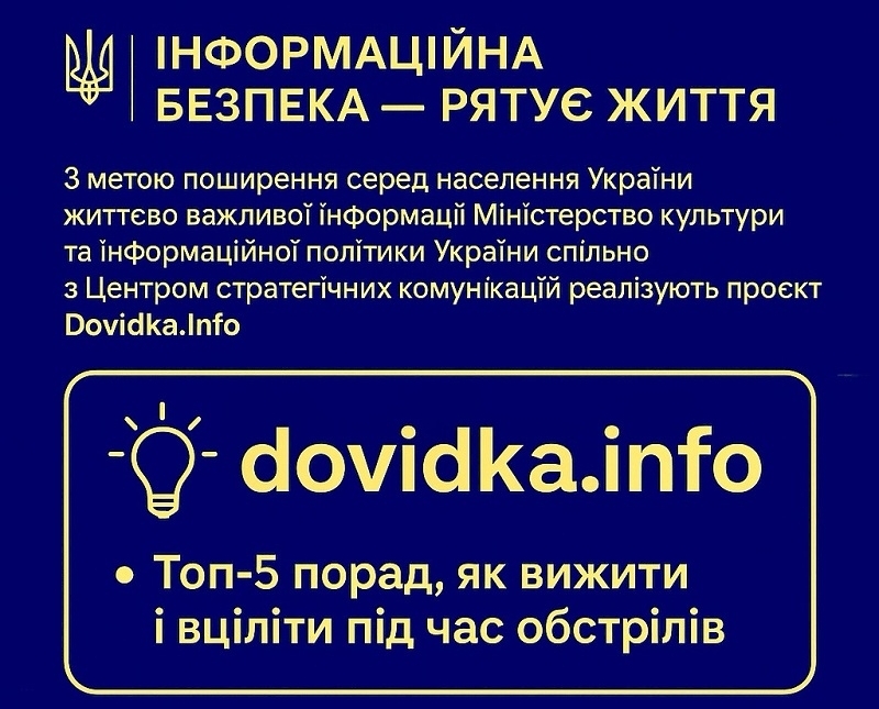 Нині у мережі можна знайти багато інформації про те, які правила безпеки діють, які ні. Однак сприймати таку інформацію варто обережно. Бо точно пояснити алгоритм порятунку в тій чи іншій небезпечній ситуації можуть лише фахівці у цій справі. Саме тому проєкт Dovidka.info Центру стратегічних комунікацій уже четвертий рік спільно з профільними державними органами розробляє вивірені інструкції з безпеки.