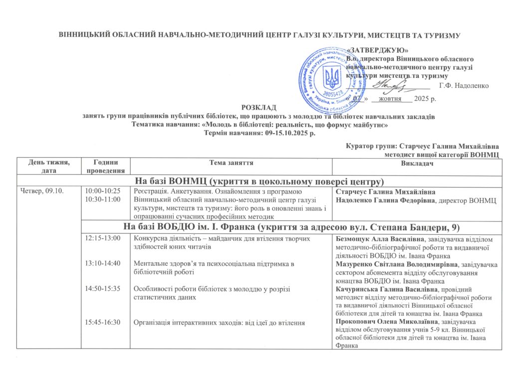 Тематика навчання “Молодь у бібліотеці: реальність, що формує майбутнє”