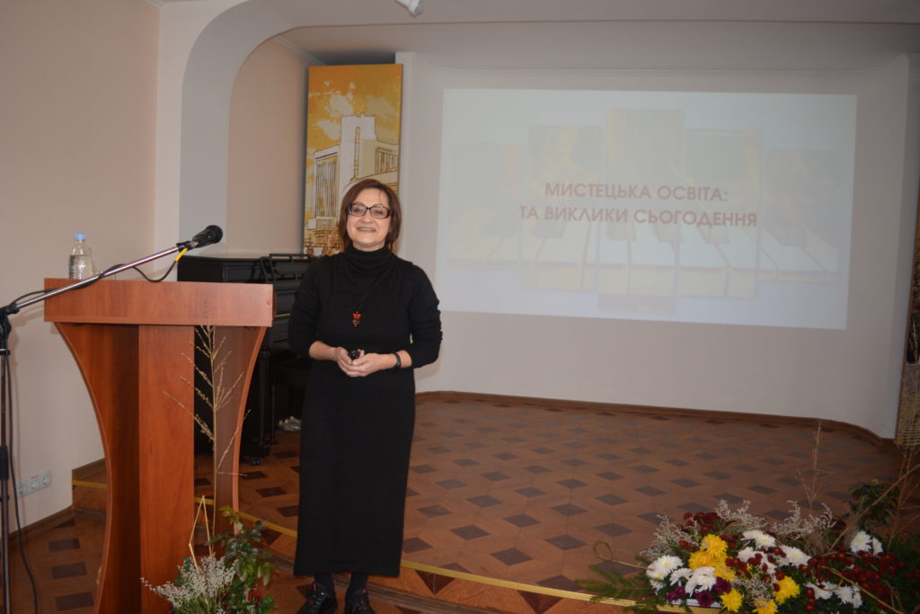 Марина Бриль, кандидат психологічних наук, директор Державного науково-методичного центру змісту культурно-мистецької освіти, заслужений працівник культури України, презентувала доповідь «Мистецька освіта та виклики сьогодення».