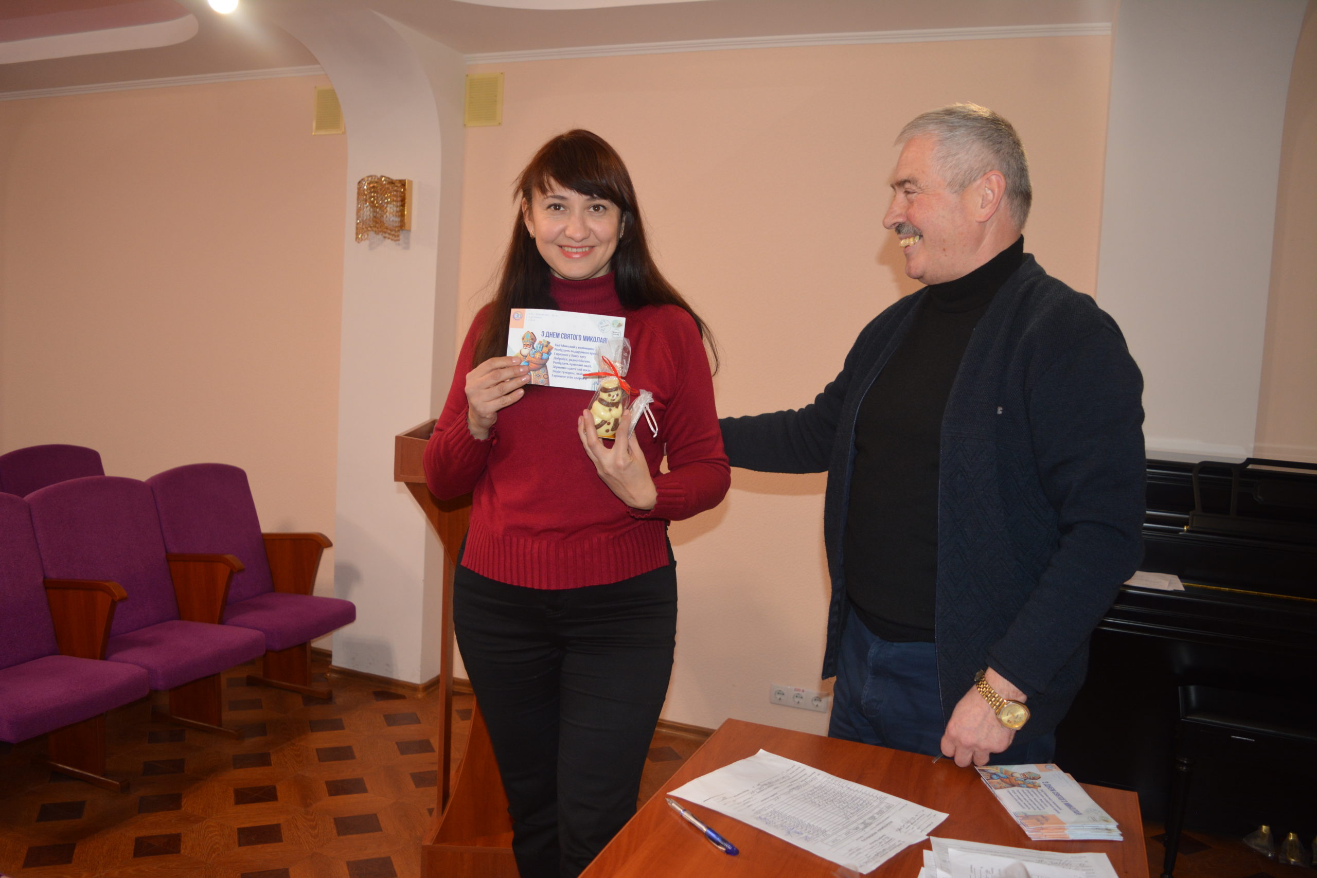 Голова профкому Сергій Гарбулинський вручив членам профспілки матеріальну винагороду та святкові сувеніри.