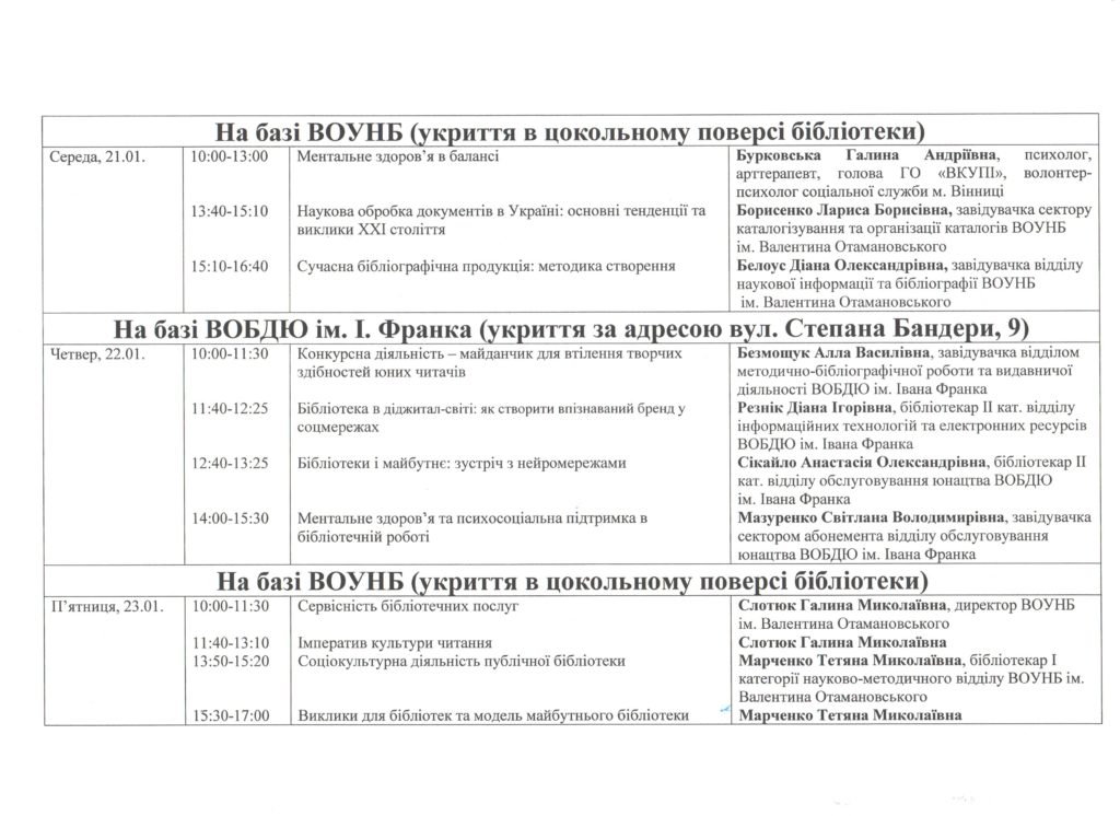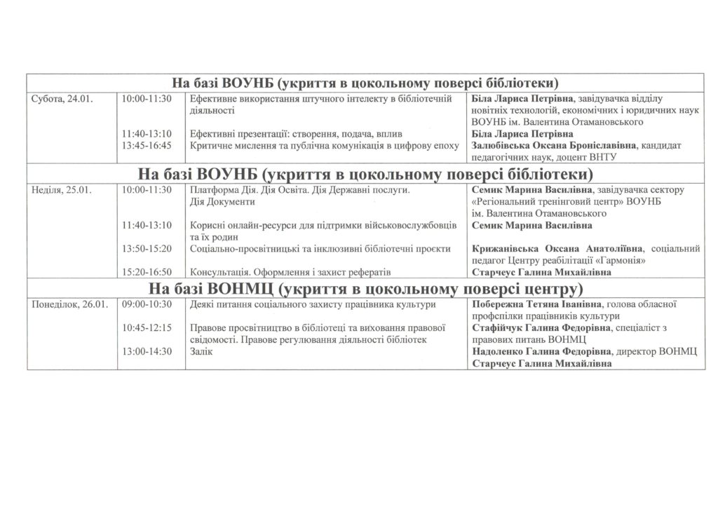 Тематика навчання: “Трансформації та адаптації публічної бібліотеки. Організація цифрових просторів у бібліотеках”.