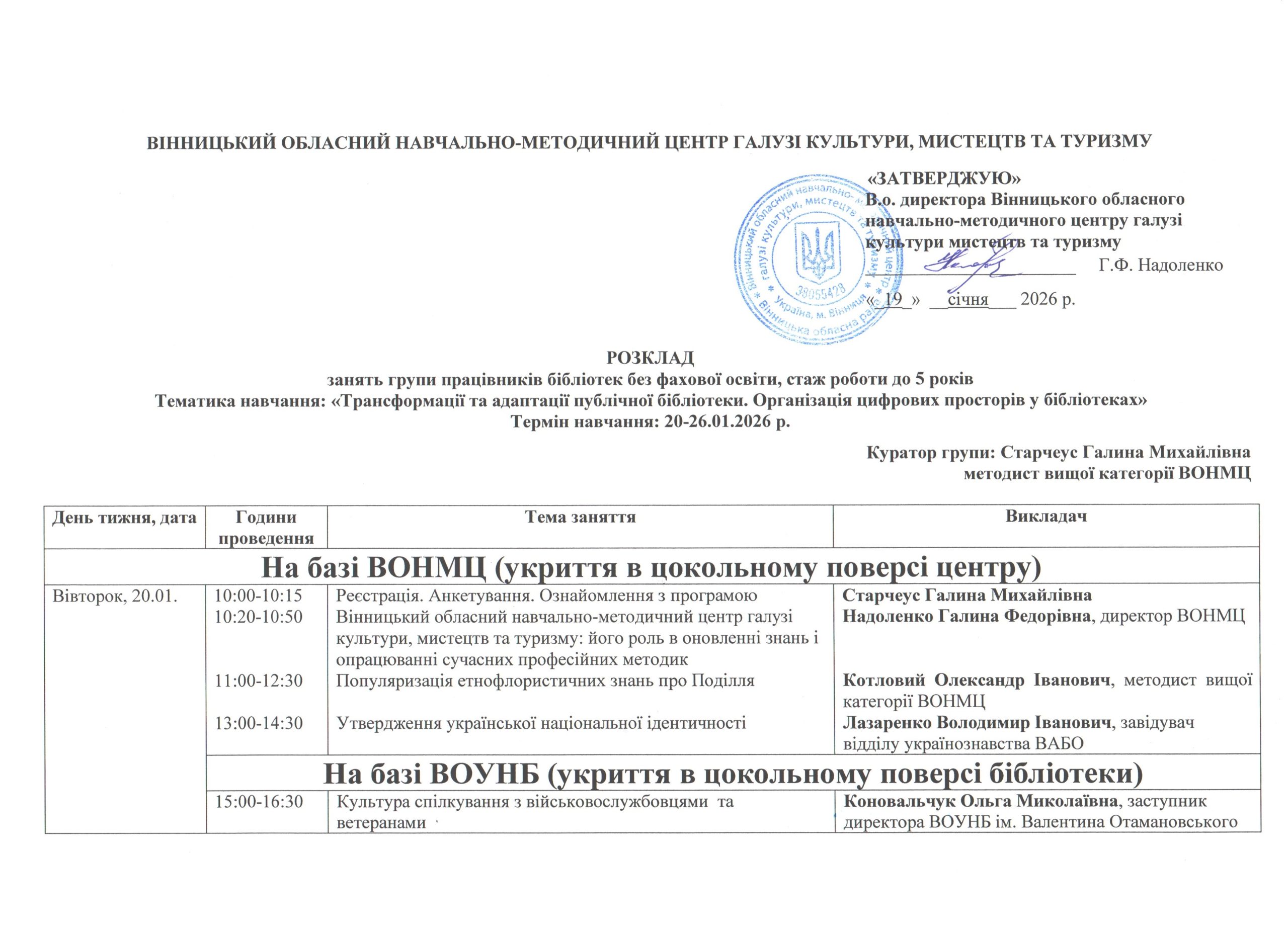 Термін навчання: 20-26.01.2026 р.