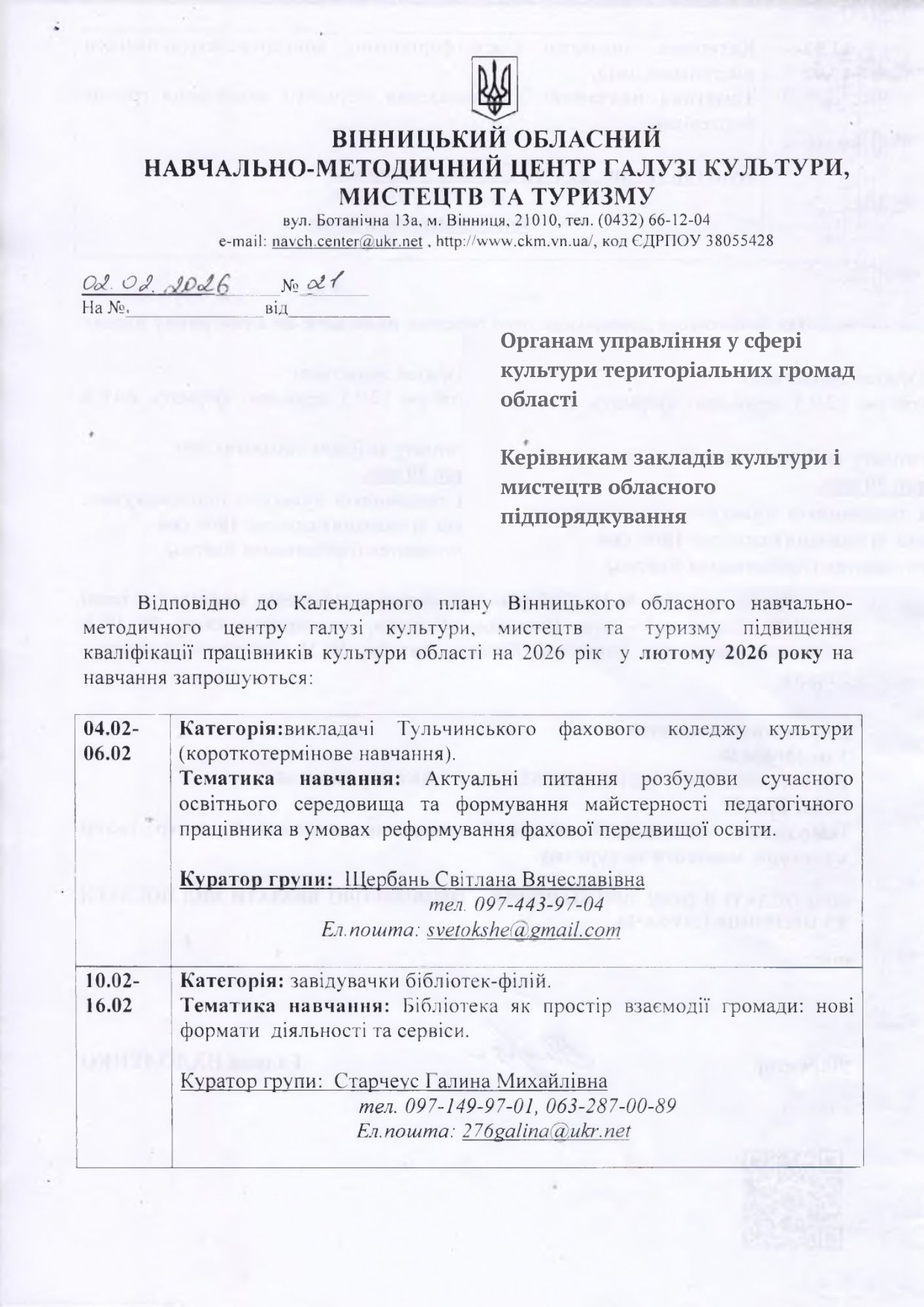Вінницький обласний навчально-методичний центр галузі культури, мистецтв та туризму