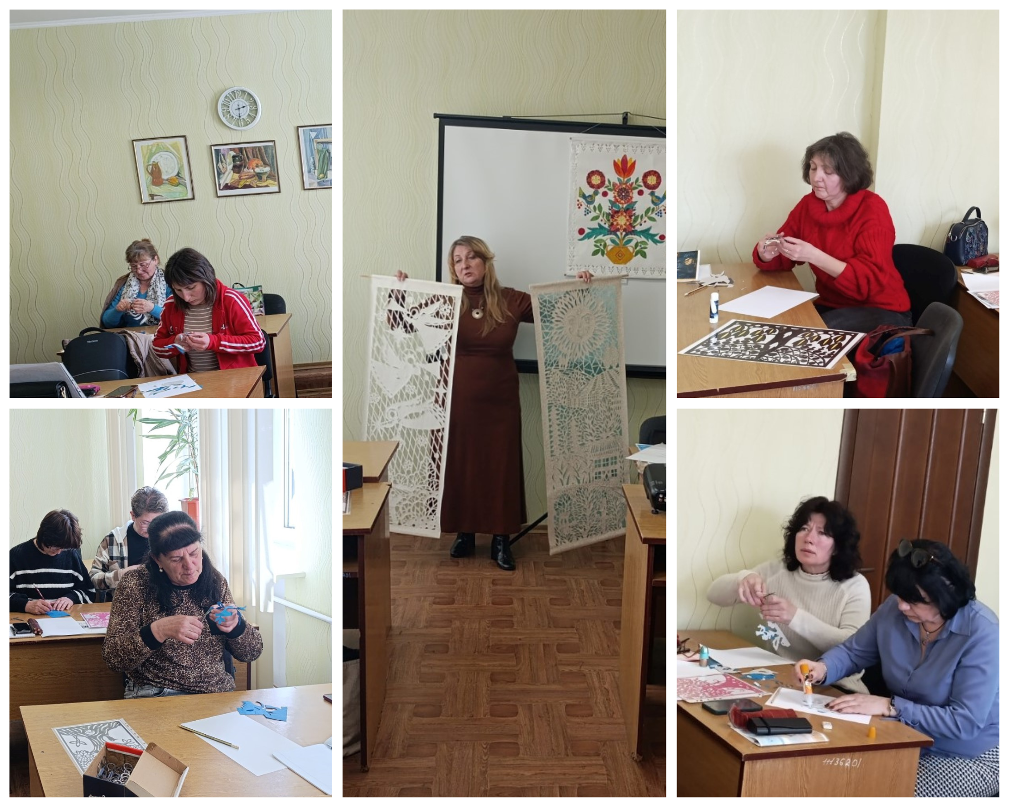 Особливу увагу було приділено практичній складовій: слухачі працювали над композицією, кольором і формою, виконували творчі завдання, опановували техніки декоративно-ужиткового мистецтва, зокрема елементи подільського розпису, витинанки та вибійки.